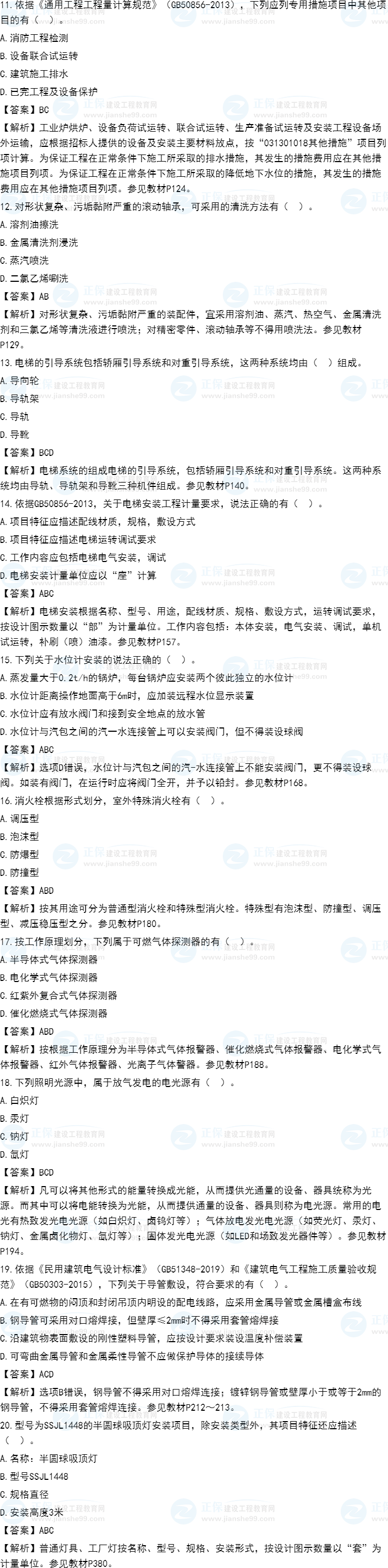 2021年一級造價師《安裝計量》試題答案及解析51-60