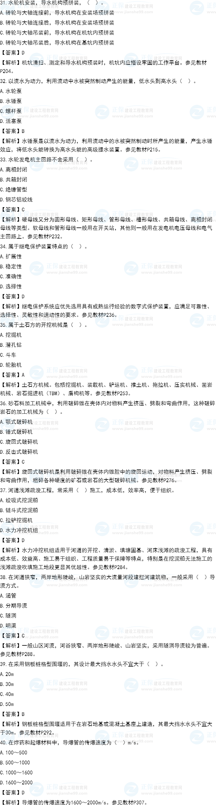 2021年一級(jí)造價(jià)師《水利計(jì)量》試題答案及解析31-40