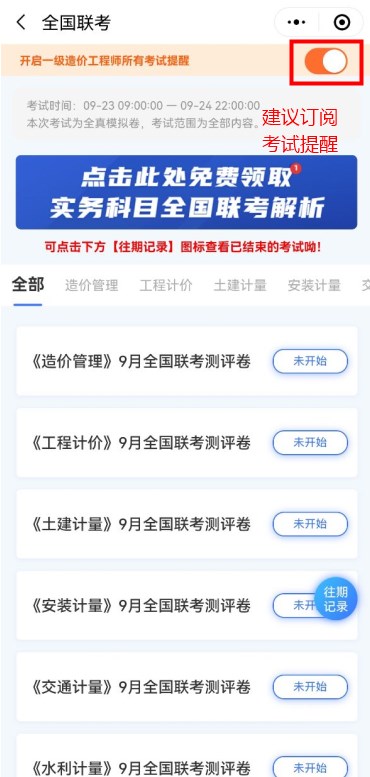 建議開(kāi)通考試提醒,避免錯(cuò)過(guò)一級(jí)造價(jià)工程師考試。