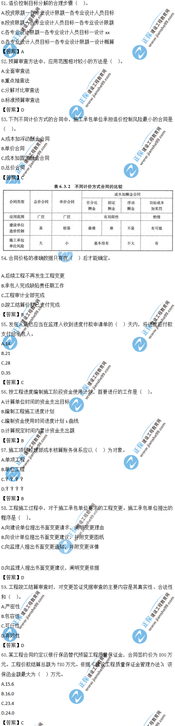 以上就是為大家分享的2019年一級造價師《建設(shè)工程造價管理》試題及答案解析51-60,建設(shè)工程教育網(wǎng)將持續(xù)關(guān)注2020年一級造價師考試的相關(guān)信息。更多2020年一級造價師考試內(nèi)容,盡在建設(shè)工程教育網(wǎng)一級造價師欄目!