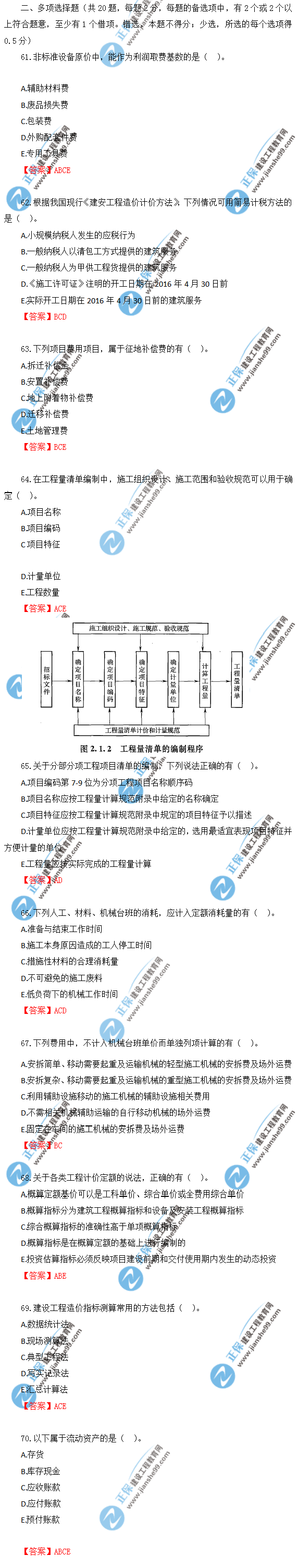2019年一級(jí)造價(jià)師《建設(shè)工程計(jì)價(jià)》試題及答案解析61-70