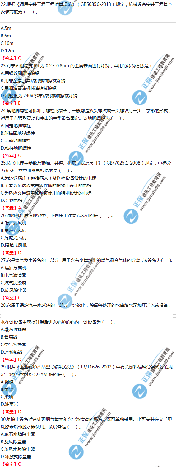 2019年一級造價師《技術(shù)與計量(安裝)》試題及答案解析21-30