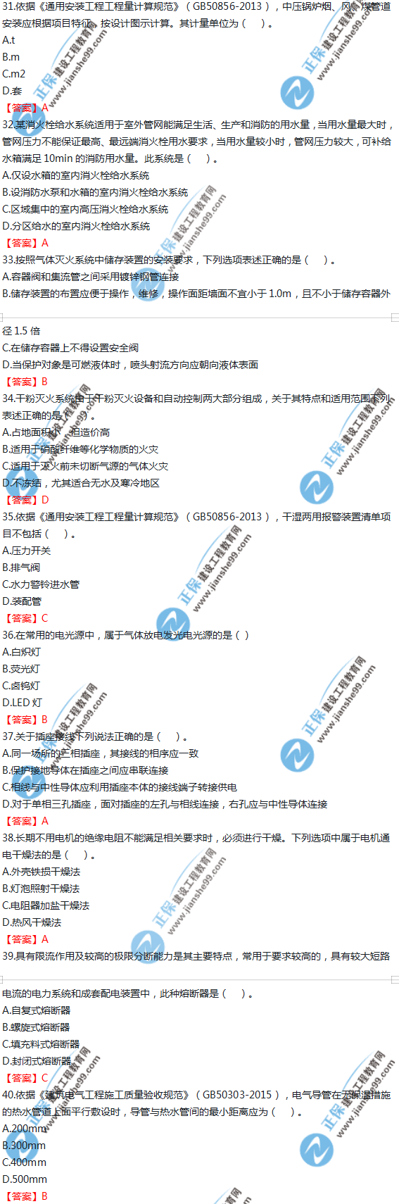2019年一級造價師《技術(shù)與計量(安裝)》試題及答案解析31-40
