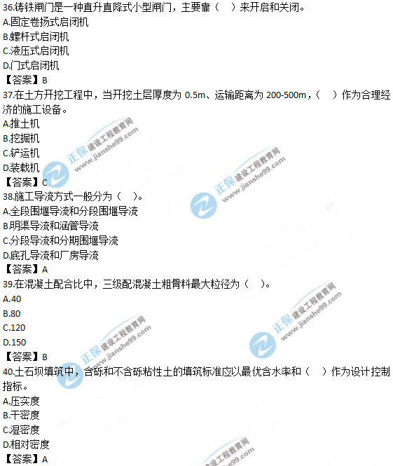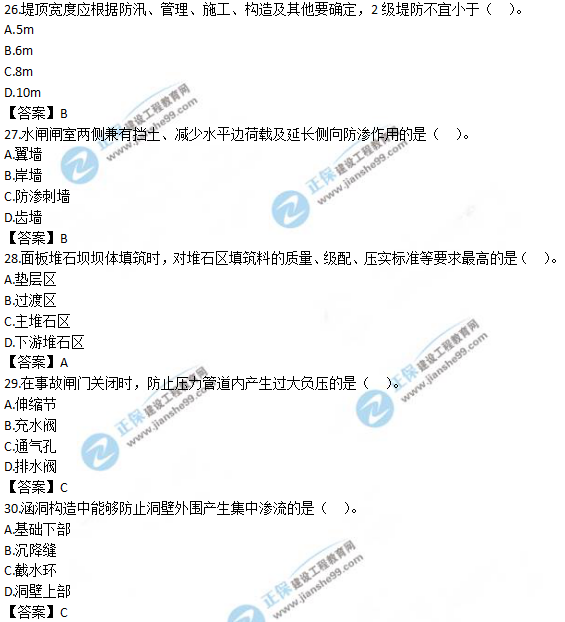 以上就是為大家分享的2019年一級(jí)造價(jià)師《技術(shù)與計(jì)量(水利)》試題及答案解析21-30,建設(shè)工程教育網(wǎng)將持續(xù)關(guān)注2020年一級(jí)造價(jià)師考試的相關(guān)信息。更多2020年一級(jí)造價(jià)師考試內(nèi)容,盡在建設(shè)工程教育網(wǎng)一級(jí)造價(jià)師欄目!