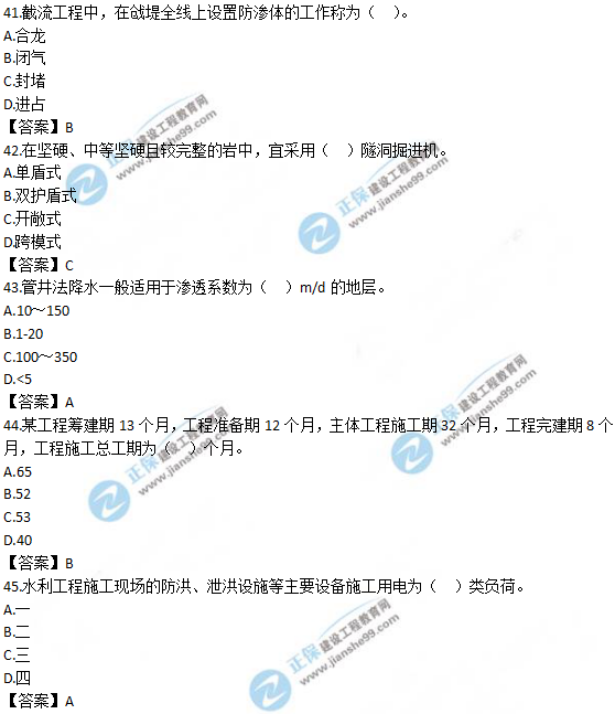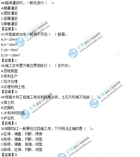 以上就是為大家分享的2019年一級造價師《技術(shù)與計量(水利)》試題及答案解析41-50,建設(shè)工程教育網(wǎng)將持續(xù)關(guān)注2020年一級造價師考試的相關(guān)信息。更多2020年一級造價師考試內(nèi)容,盡在建設(shè)工程教育網(wǎng)一級造價師欄目!