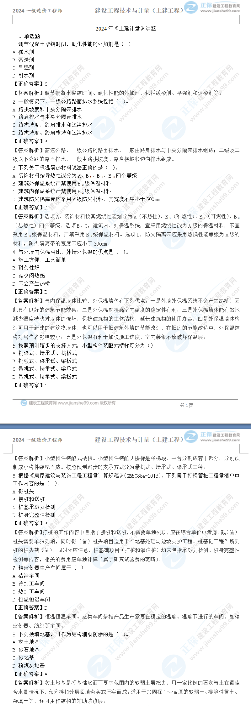 2024年一級(jí)造價(jià)師建設(shè)工程技術(shù)與計(jì)量(土建)真題及答案解析