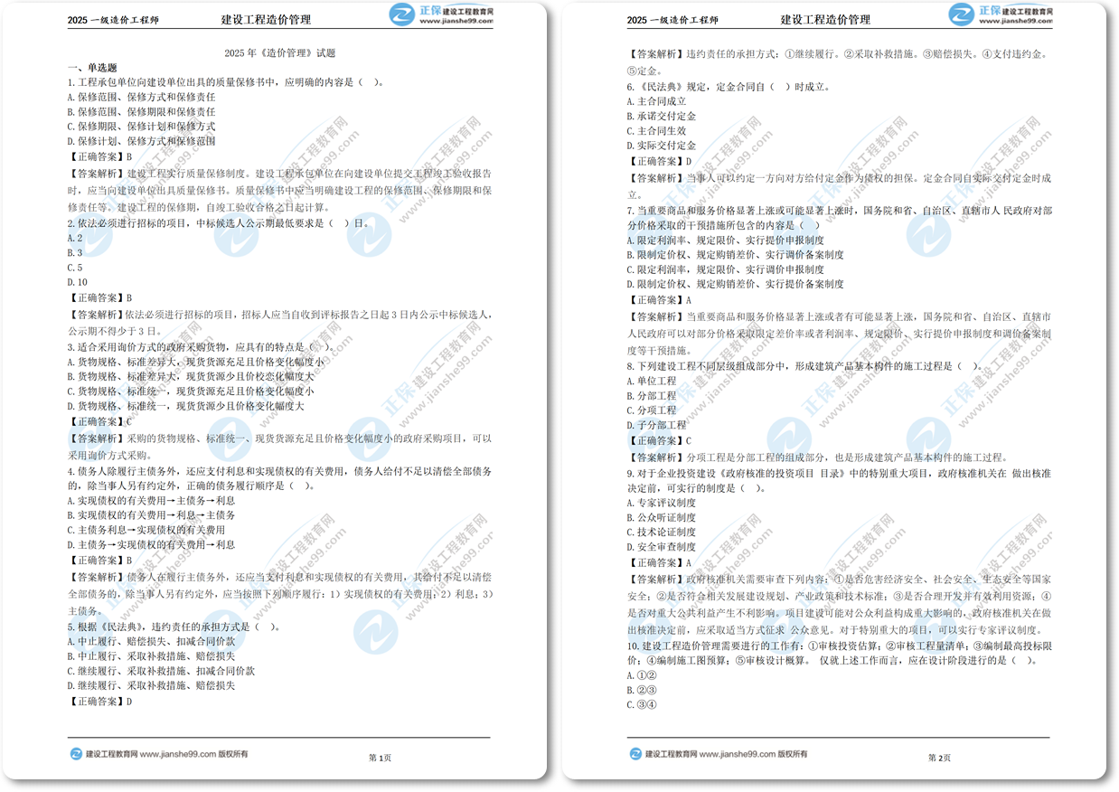 2025年一級造價師考試《造價管理》科目真題及答案解析