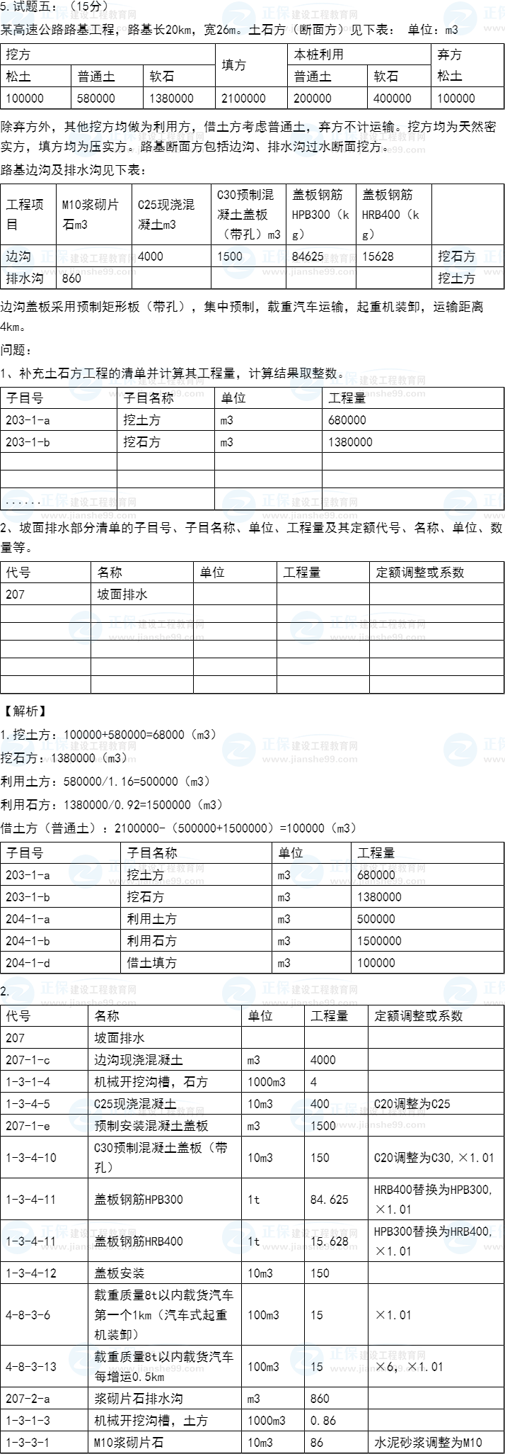 2021年一級造價師《交通案例》試題答案及解析五