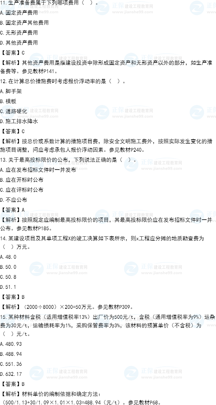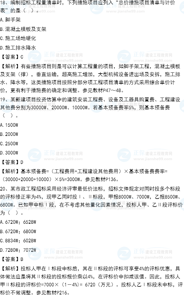 2021年一級造價(jià)師《建設(shè)工程計(jì)價(jià)》試題答案及解析11-20