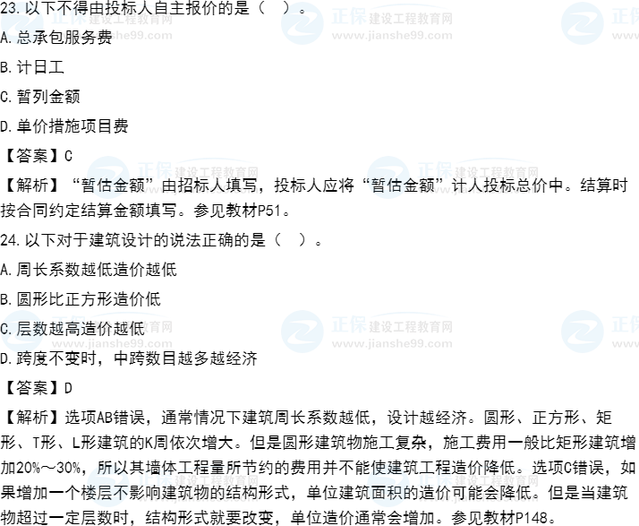 2021年一級(jí)造價(jià)師《建設(shè)工程計(jì)價(jià)》試題答案及解析21-30