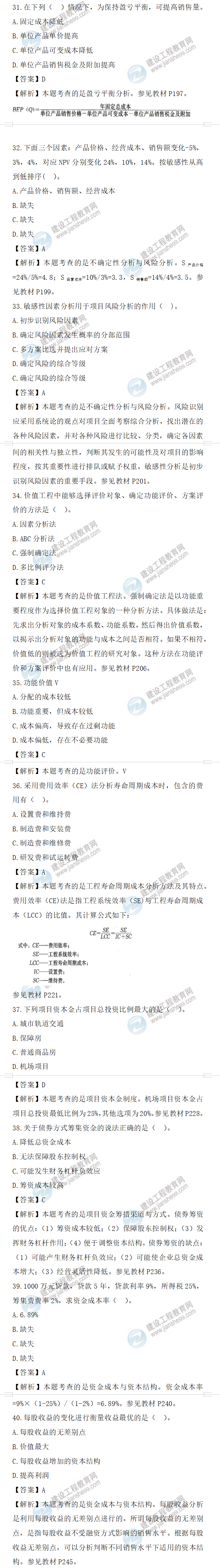 2022年一級(jí)造價(jià)師造價(jià)管理試題答案及解析31-40題
