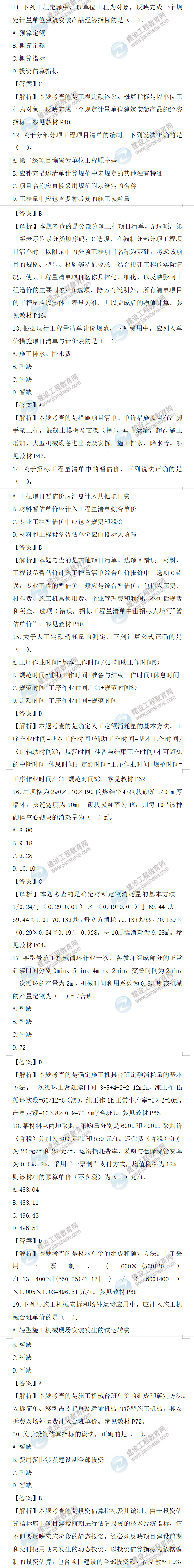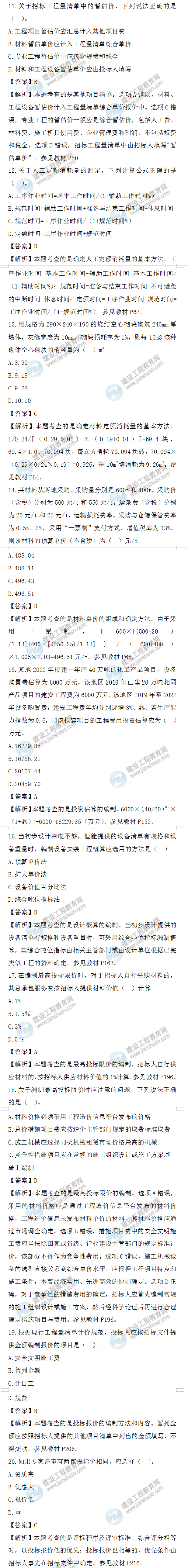 2022年一級(jí)造價(jià)師工程計(jì)價(jià)試題答案及解析11-20題