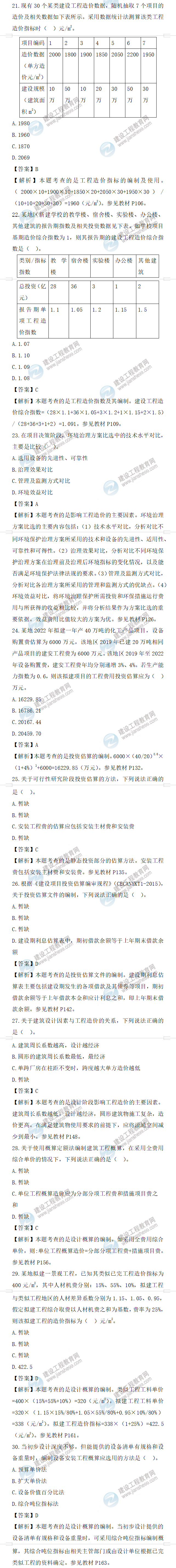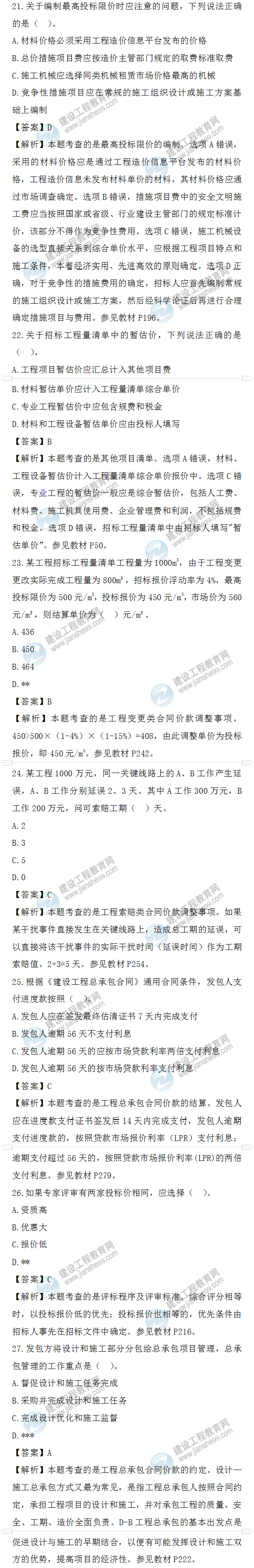 2022年一級(jí)造價(jià)師工程計(jì)價(jià)試題答案及解析21-30題