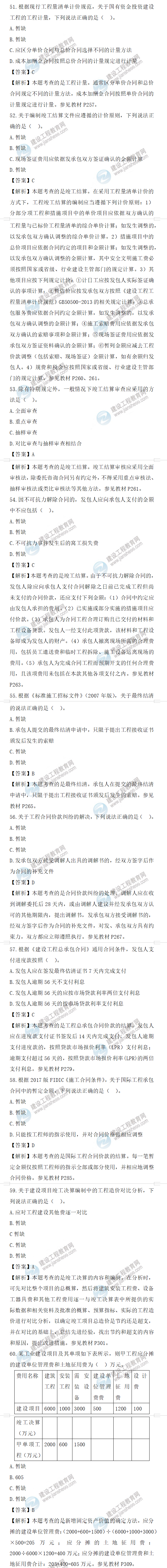 2022年一級造價師工程計價試題答案及解析51-60題