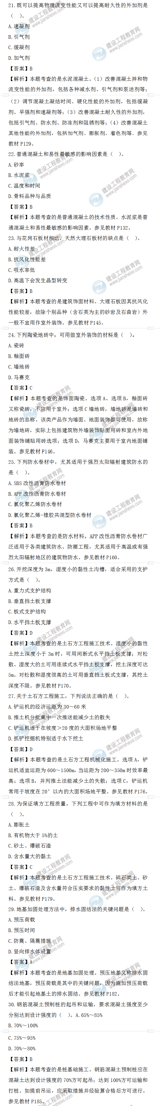 2022年一級造價師土建計量試題答案及解析21-30題