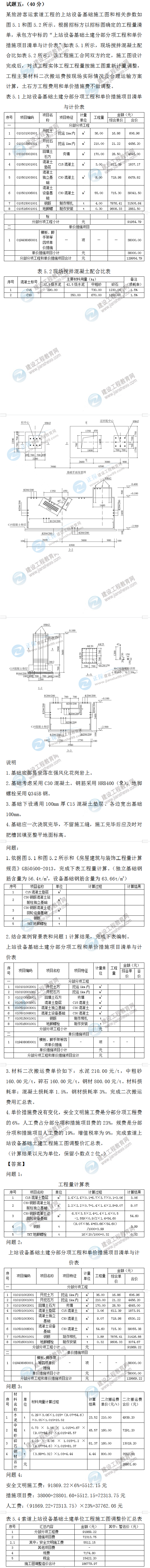 2022年一級(jí)造價(jià)師土建案例試題答案及解析案例五