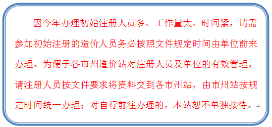 根據(jù)建設(shè)部《注冊(cè)造價(jià)工程師管理辦法》(建設(shè)部令第150號(hào))《建設(shè)部實(shí)施行政許可工作規(guī)程》(建設(shè)部公告第278號(hào))住建部《關(guān)于造價(jià)工程師注冊(cè)審核有關(guān)事項(xiàng)的通知》(建標(biāo)造函[2016]8號(hào))及住建部 交通部 水利部 人社部《造價(jià)工程師職業(yè)資格制度規(guī)定》《造價(jià)師職業(yè)資格考試實(shí)施辦法》建人[2018]67號(hào))的規(guī)定,結(jié)合我省注冊(cè)工作的實(shí)際情況,現(xiàn)對(duì)2019年度一級(jí)造價(jià)工程師初始注冊(cè)工作安排如下。
