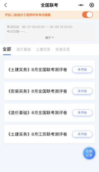2.聯(lián)考結(jié)束后全國聯(lián)考入口將關(guān)閉,學(xué)員可通過進(jìn)入建筑刷題寶小程序——二級造價(jià)工程師——模擬實(shí)戰(zhàn)進(jìn)行購買下載;