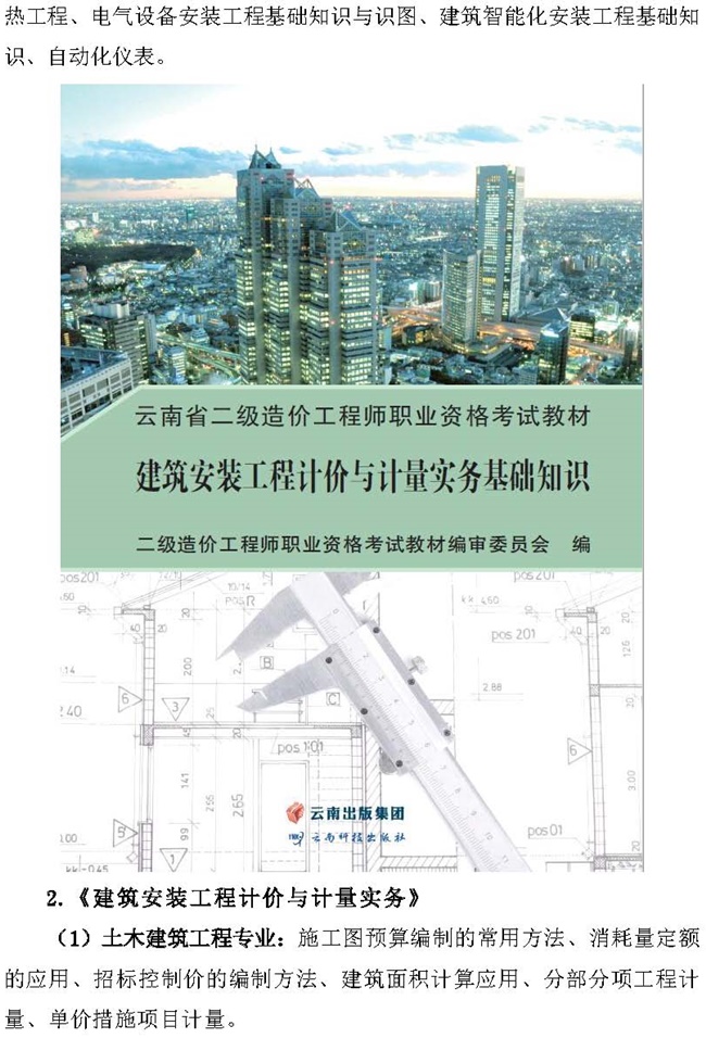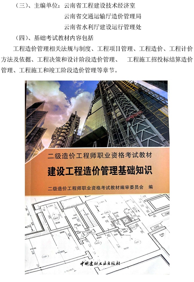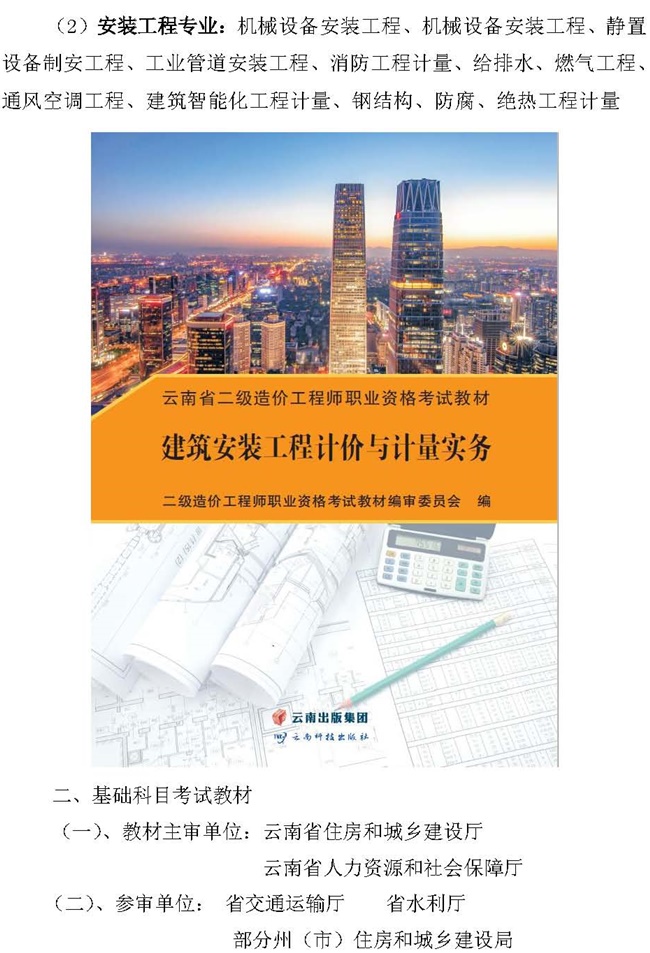 《建設(shè)工程計(jì)量與計(jì)價(jià)實(shí)務(wù)(土木建筑工程)》、《建設(shè)工程計(jì)量與計(jì)價(jià)實(shí)務(wù)(安裝工程)》2個科目可參考使用中國建筑工業(yè)出版社出版的重慶地區(qū)教材《建設(shè)工程計(jì)量與計(jì)價(jià)實(shí)務(wù)(土木建筑工程)》和《建設(shè)工程計(jì)量與計(jì)價(jià)實(shí)務(wù)(安裝工程)》,教材相關(guān)事宜可咨詢023-61968133、61968122。