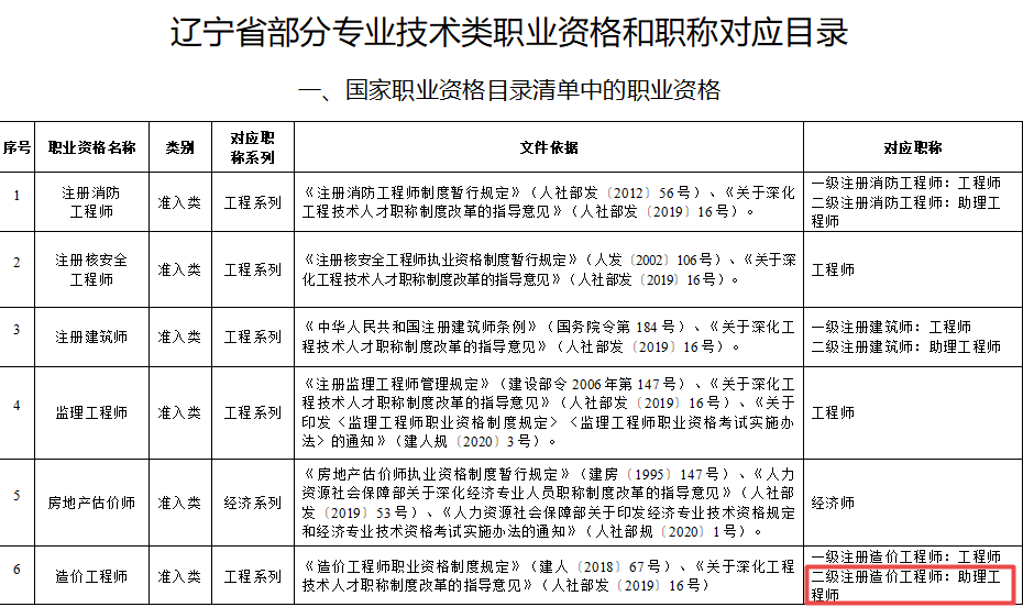 信息來自《遼寧省部分專業(yè)技術(shù)類職業(yè)資格和職稱對應(yīng)目錄》
