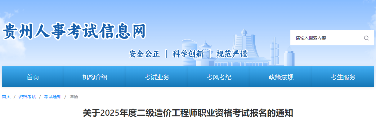 貴州省人事考試信息網發(fā)布關于2025年度二級造價工程師職業(yè)資格考試報名的通知,詳情如下: