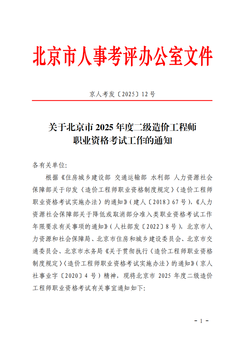關(guān)于北京市2025年度二級造價工程師職業(yè)資格考試工作的通知