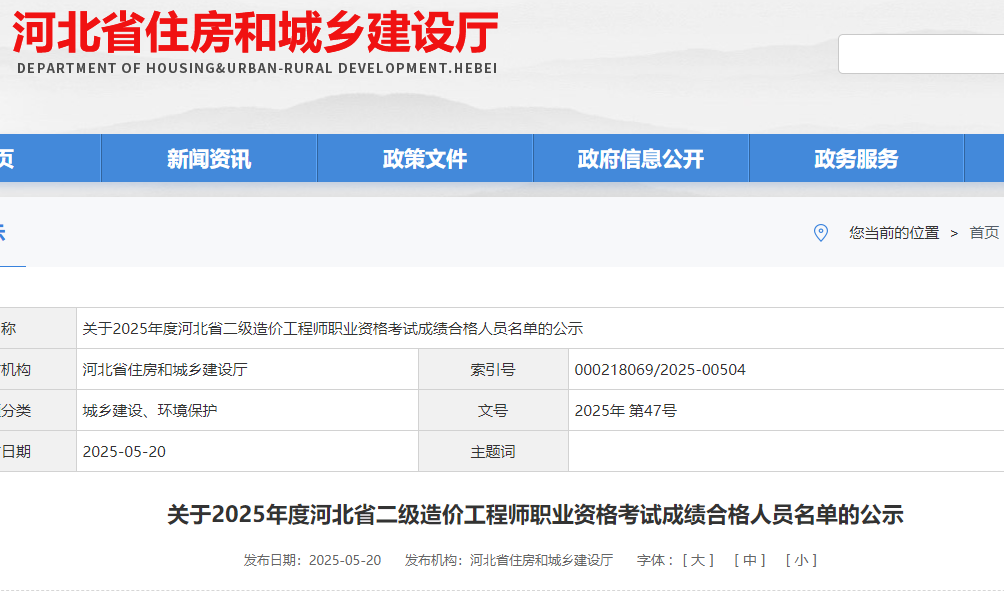 2025年度河北省二級(jí)造價(jià)工程師職業(yè)資格考試成績(jī)合格人員名單公示