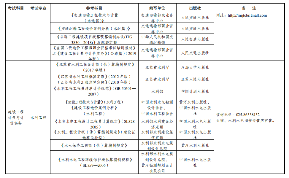 2025年江蘇省二級(jí)造價(jià)工程師職業(yè)資格考試依據(jù)住房城鄉(xiāng)建設(shè)部、交通運(yùn)輸部、水利部組織編寫,人力資源社會(huì)保障部審定的 2019 年版《全國二級(jí)造價(jià)工程師職業(yè)資格考試大綱》命題。中國建設(shè)工程造價(jià)管理協(xié)會(huì)網(wǎng)站(http://www.ccea.pro)、交通運(yùn)輸部職業(yè)資格中心網(wǎng)站(http://www.jtzyzg.org.cn)及水利水電規(guī)劃設(shè)計(jì)總院網(wǎng)站(http://www.giwp.org.cn)可免費(fèi)下載。參考教材詳見附件 4。