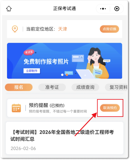 3.訂閱成功后,在考試報名及各重要時間節(jié)點,會進行微信通知,以免錯過重要節(jié)點;如需取消可點擊“取消預(yù)約”按鈕。