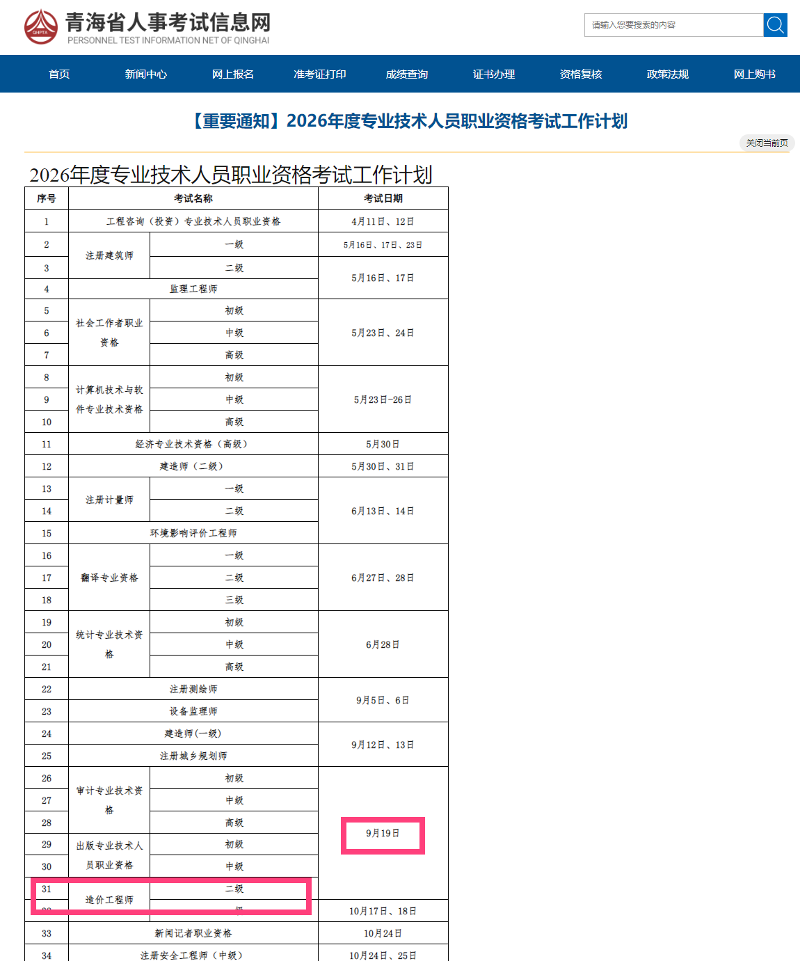 青海省2026年二級造價師考試時間確定!