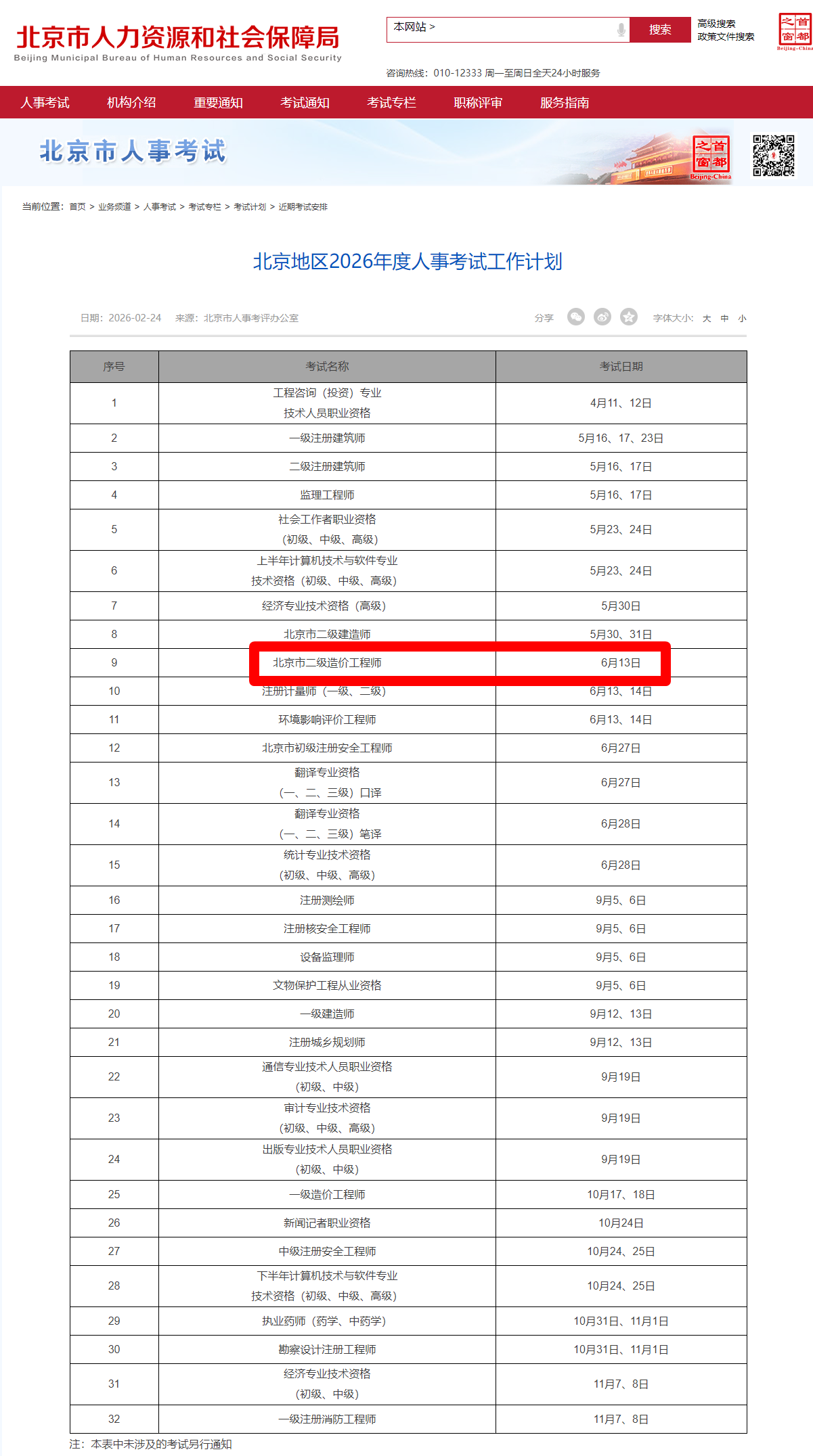 通知原文:https://rsj.beijing.gov.cn/ywsite/bjpta/kszl/ksjh/jqks2/202602/t20260224_4536470.html
