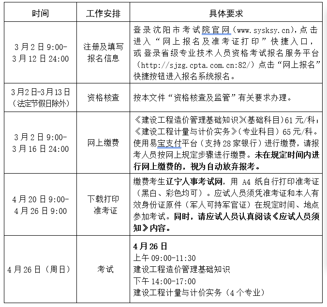根據(jù)遼寧省人事考試中心《關(guān)于做好2026年度二級(jí)造價(jià)工程師職業(yè)資格考試考務(wù)工作的通知》(遼人考函〔2026〕5號(hào))精神,為做好2026年度二級(jí)造價(jià)工程師職業(yè)資格考試沈陽(yáng)考區(qū)報(bào)名工作,現(xiàn)將有關(guān)事項(xiàng)通知如下: