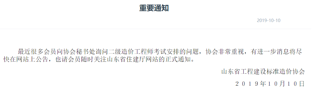 山東2019年二級造價工程師考試最新通知