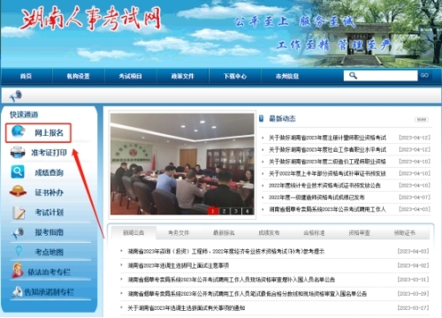 報(bào)考人員可登錄湖南人事考試網(wǎng)(),點(diǎn)擊“網(wǎng)上報(bào)名”中的“省級(jí)專(zhuān)業(yè)技術(shù)人員資格考試服務(wù)平臺(tái)”進(jìn)行網(wǎng)上報(bào)名。
