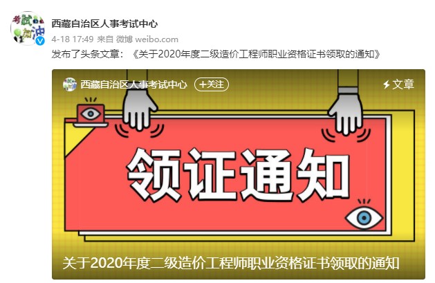 西藏關(guān)于2020年度二級造價工程師職業(yè)資格證書領(lǐng)取的通知