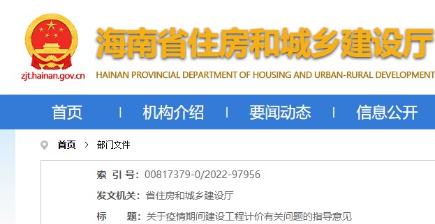 海南省住房和城鄉(xiāng)建設(shè)廳關(guān)于疫情期間建設(shè)工程計價有關(guān)問題的指導(dǎo)意見