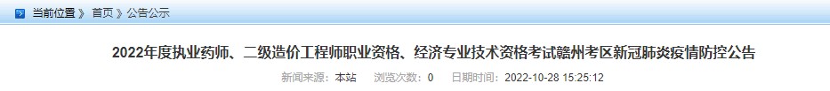 贛州市2022年二級(jí)造價(jià) 工程師職業(yè)資格考試新冠肺炎疫情防控公告