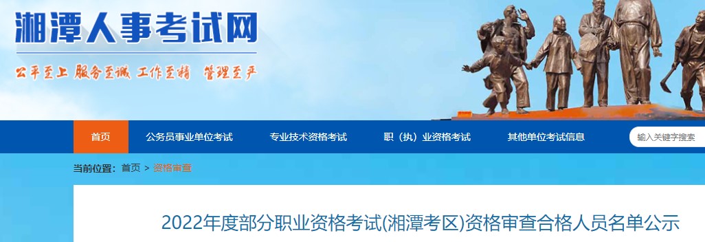 2022年度部分職業(yè)資格考試(湘潭考區(qū))資格審查合格人員名單公示