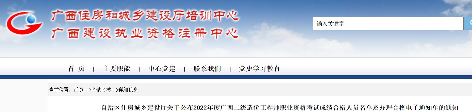 自治區(qū)住房城鄉(xiāng)建設(shè)廳關(guān)于公布2022年度廣西二級(jí)造價(jià)工程師職業(yè)資格考試成績(jī)合格人員名單及辦理合格電子通知單的通知