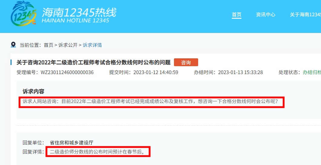 近日,有考生就22年二造成績(jī)公布時(shí)間的問(wèn)題向海南省住建廳進(jìn)行提問(wèn),并得到了官方回復(fù)。