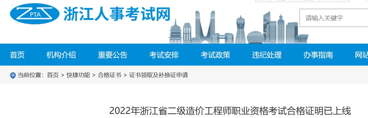 2022年浙江省二級造價工程師職業(yè)資格考試合格證明已上線