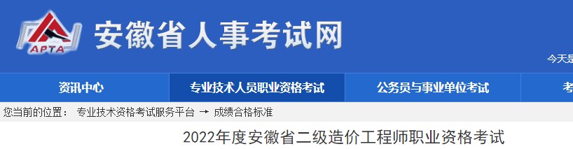 安徽省2022年二級造價師考試成績合格標(biāo)準(zhǔn)已公布