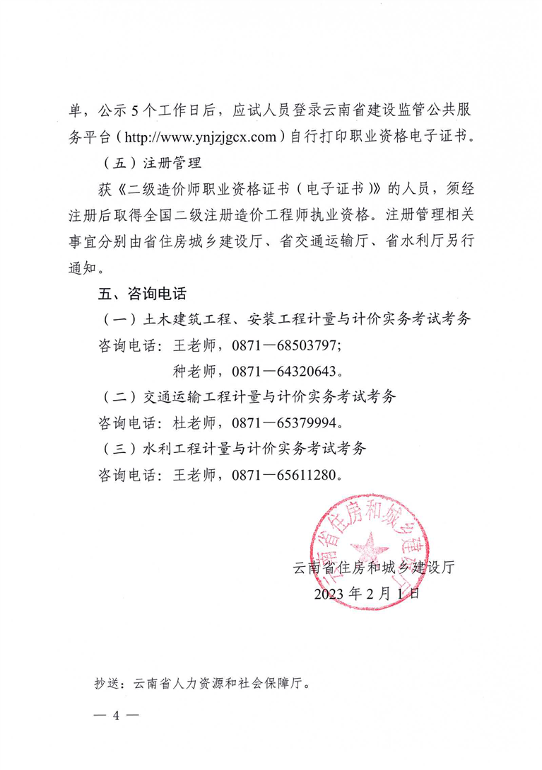 云南省恢復(fù)2022年度二級造價師考試時間:2023年2月25日