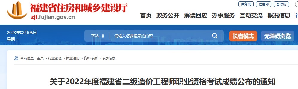 關(guān)于2022年度福建省二級(jí)造價(jià)工程師職業(yè)資格考試成績(jī)公布的通知