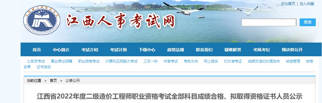 江西省2022年度二級(jí)造價(jià)師職業(yè)資格考試全部科目成績(jī)合格人員公示