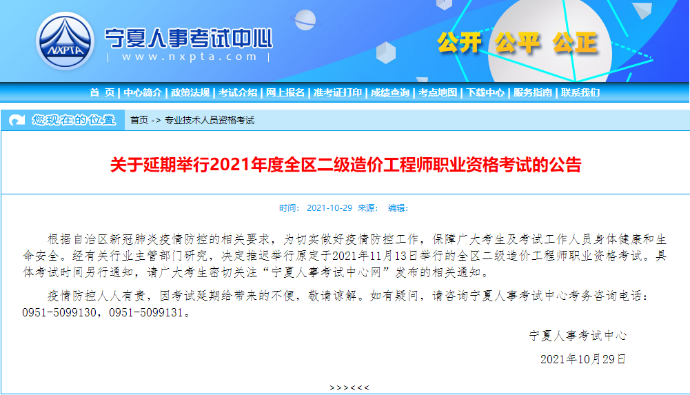2021年寧夏二級(jí)造價(jià)師考試延期通知