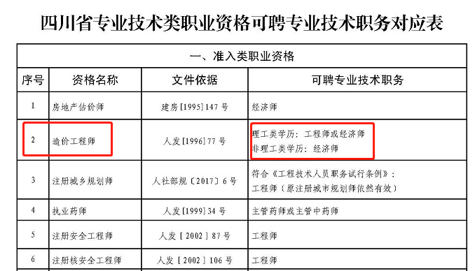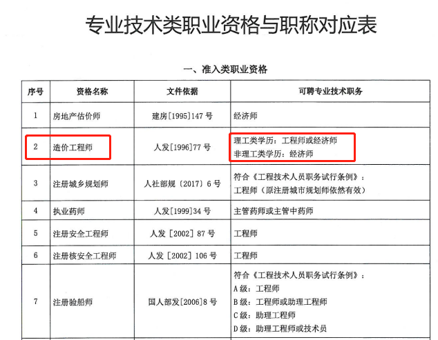 其中,取得一級(jí)造價(jià)工程師資格的人員,可聘任工程師職務(wù);取得二級(jí)造價(jià)工程師資格的人員,可聘任助理工程師職務(wù)。
