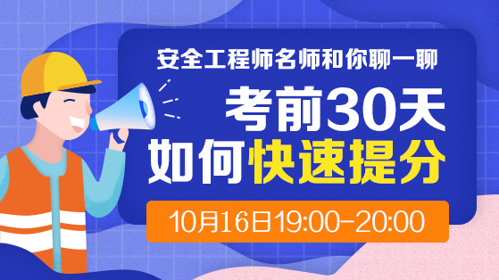 距離2019年中級安全工程師考試僅剩30天,隨著時間越來越近,發(fā)現(xiàn)很多重要的知識點未記住,心態(tài)也越來越焦躁。如何拯救你我的考試!同學們,放輕松!建設工程教育網(wǎng)臨考30天快速提升直播,賈若冰老師帶領考生們1小時直擊考點,1小時梳理重難點,1小時掌握做題技巧,你與直達只差這1小時!