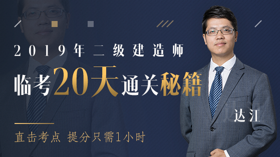距離2019年二級建造師考試僅剩20天左右,隨著時間越來越近,發(fā)現(xiàn)很多重要的知識點未記住,心態(tài)也越來越焦躁。如何拯救你我的二級建造師考試!同學(xué)們,放輕松!建設(shè)工程教育網(wǎng)臨考20天直達秘籍直播,達江老師帶領(lǐng)考生們1小時直擊考點,1小時梳理重難點,1小時掌握做題技巧,你與直達只差這1小時!