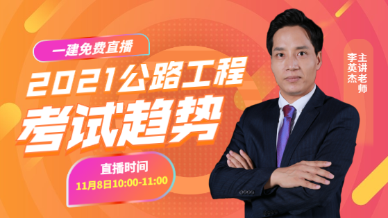 對(duì)于很多同學(xué)來(lái)說(shuō)一級(jí)建造師最難以逾越的鴻溝就是實(shí)務(wù)科目,案例題真的讓人頭疼!2021年一級(jí)建造師公路實(shí)務(wù)會(huì)有哪些變化?趨勢(shì)有哪些?鎖定11月8日上午10點(diǎn),聽(tīng)李英杰老師娓娓道來(lái)!